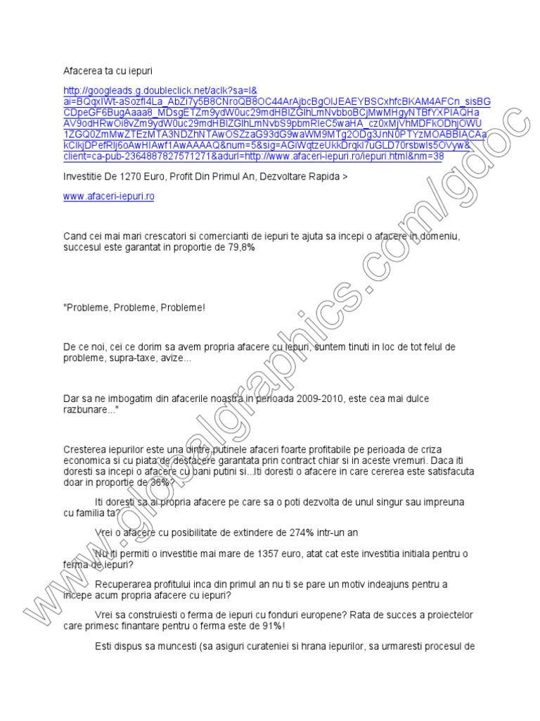 Dorința de a crește iepuri trebuie să vină de undeva din interior nu trebuie să asculți sfatul cuiva a ținut să menționeze antreprenorul care crede că în general să faci afacere indiferent de domeniu dar și de locație se aseamănă cu mersul pe cioburi de sticlă cu ochii legați trebuie să simți foarte bine ceea ce te înconjoară. Idei de afaceri 2009 export iepuri in ungaria. în supermarket carcasele de iepuri provenite din import ungaria şi cehia se vând cu 46 lei kg calitatea a iii a. Fiecare contract comercial este unic si pretul se negociaza pentru fiecare cantitate in parte precum si pentru calitatea mierii.