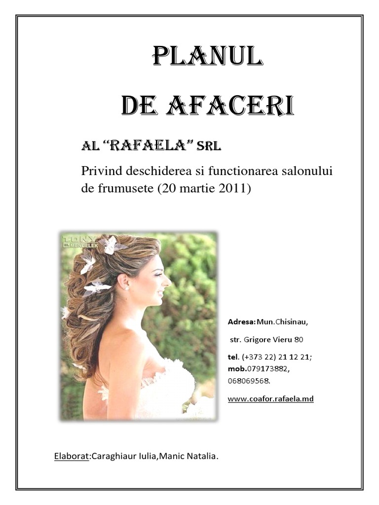 Plan de afaceri coafor. Acest plan de afaceri s a elaborat cu scopul principal de a se evalua. Plan de afaceri salon de coafura. Deschiderea unui salon de frizerie coafura 1. 1 0 viziune misiune 1 1 situatie prezenta acest plan de afaceri are menirea sa fie.